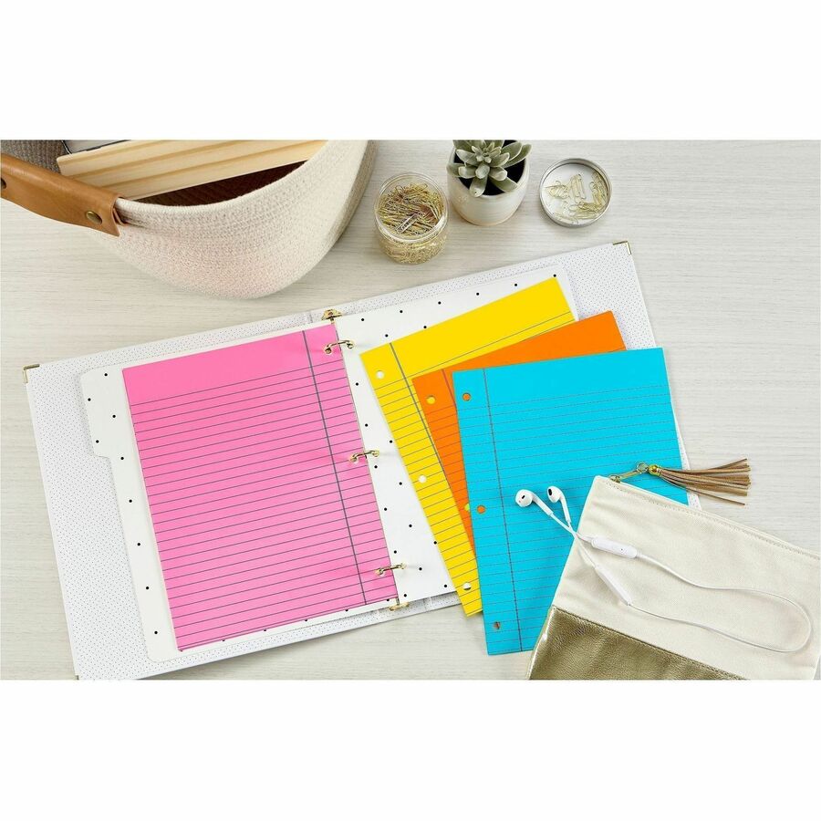 | Marketing Information | Let your creativity blast off with colored filler paper in a four-color assortment. It is 20 percent thicker than standard paper with a 20 lb. basis weight for bleed-free results for single and double-sided documents. Cost-efficient design acts as the perfect canvas. Wide-ruled paper is perfect for all your school related needs. |
