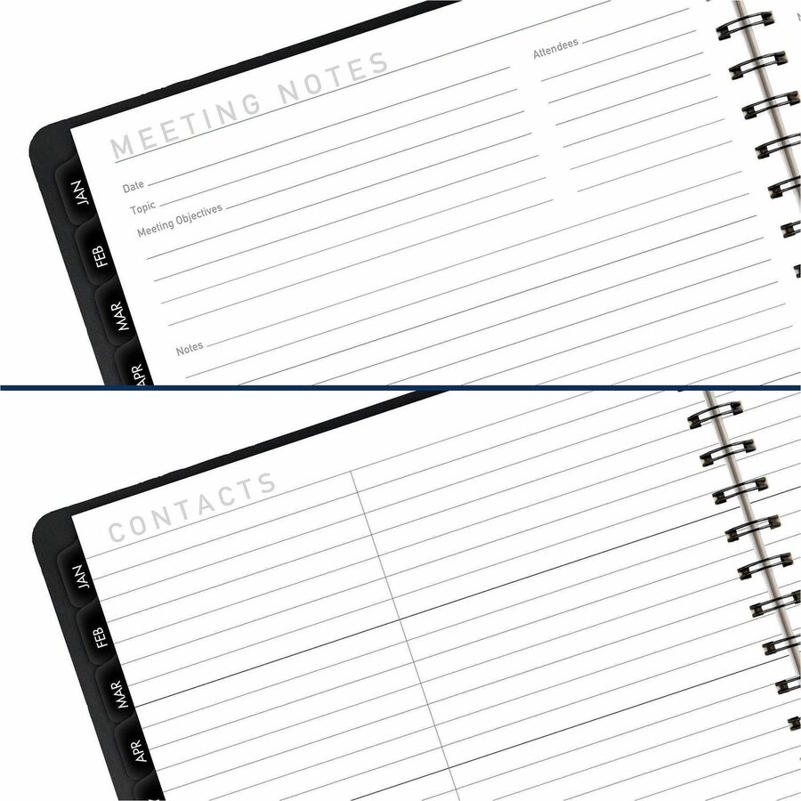 Large - Julian Dates - Weekly, Monthly - 1 Year - January 2026 to December 2026 - 8:00 AM to 5:30 PM - Half-hourly - 1 Week, 1 Month Double Page Layout - 8 1/4" x 11" Sheet Size - White Sheet - Wire Bound - Simulated Leather, Faux Leather - Black Cover - Textured Cover, Appointment Schedule, Reference Calendar, Tabbed, Notepad, Double Pocket - 1 Each