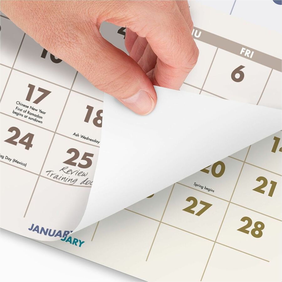 Large - Monthly - 14 Month - December 2025 to January 2027 - 3 Month Single Page Layout - 12" x 27" Sheet Size - White Sheet - Wire Bound - Multi - Chipboard, Paper - Full-Color Scenic Photos, Bleed Resistant Paper, Unruled Daily Block, Year Date Indicator, Hanging Loop - 1 Each