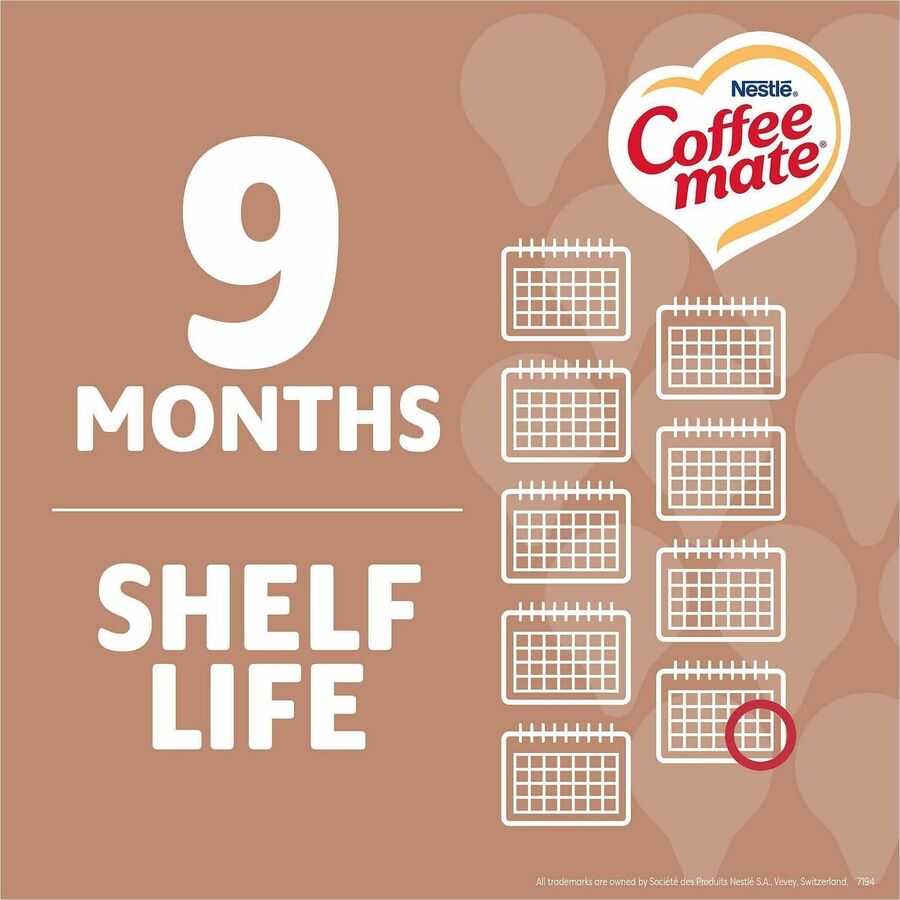 | Marketing Information | Delight your employees, customers and guests by offering Coffee mate liquid creamer in your workplace, breakroom or kitchen. Cafe Mocha creamer is flavorful, creamy chocolate indulgence. Single-serve cups in a convenient dispenser keep your counter clean and organized. With this popular creamer in the office, everyone can enjoy coffeehouse indulgence without ever leaving the building. No refrigeration is necessary. Creamer is Kosher Dairy, lactose-free and cholesterol-free. |