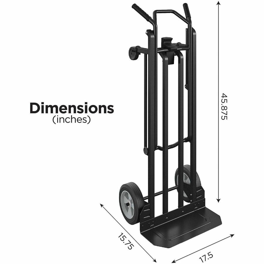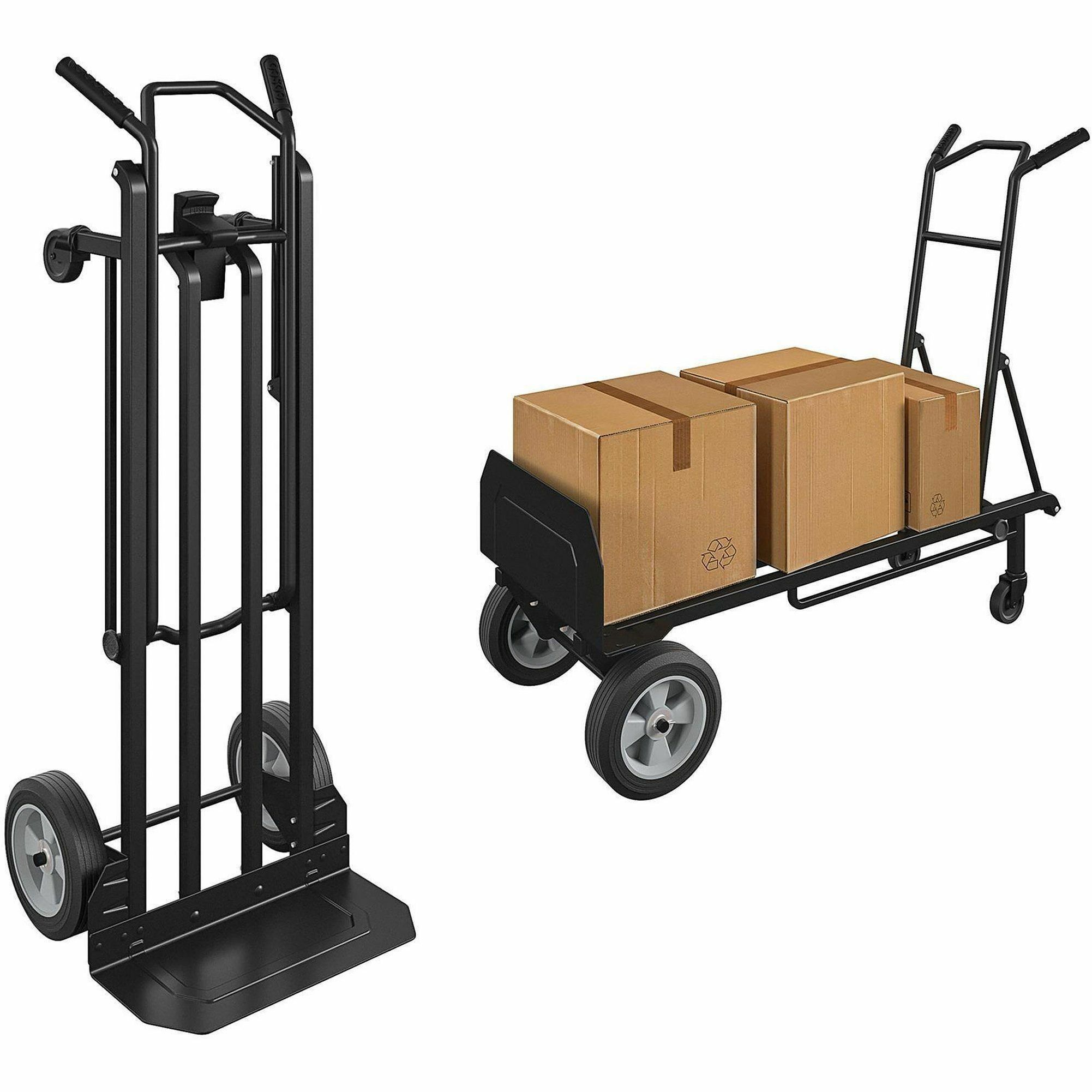 | Marketing Information | 2-in-1 Hybrid Hand Truck does all your heavy lifting with its ergonomic design. Residential-grade, hybrid construction converts from a four-wheel cart to a two-wheel hand truck with no pins or tools needed. Four-wheel cart holds up to 800 lb. while the two-wheel hand truck holds up to 600 lb. Steel hand truck converts in one swift motion with no tools or pins, saving you time and energy. Dual-purpose handles improve maneuverability while using one or two hands. Flat-free tires resist deflation from sharp objects on the job to use on multiple terrains. Gusseted toe plate keeps your heavy items in place for convenient portability. |