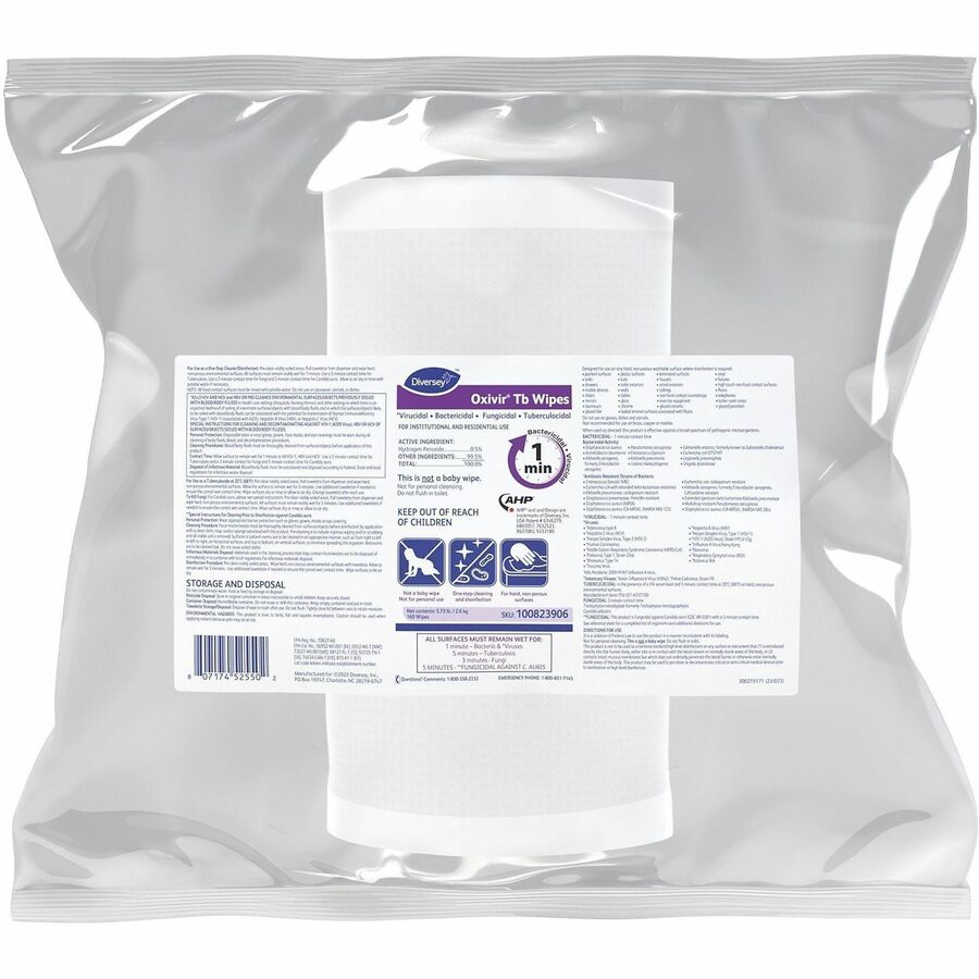 | Marketing Information | Ready-to-use wipes are treated with general virucide, bactericide, tuberculocide, fungicide and sanitizer to deliver fast, effective cleaning performance. Use to clean most hard, nonporous environmental surfaces with confidence. Cleaner disinfects in 60 seconds to kill bacteria, HIV-1, HBV and HCV. The active ingredient breaks down to water and oxygen. The cleaner does not contain VOCs, added fragrance or NPEs. Each wipe measures 6" x 7". All food-contact surfaces must be rinsed with potable water. Do not use on glassware, utensils or dishes. Cleaner is not recommended for use on brass, copper, aluminum, bronze, granite, zinc or marble. |