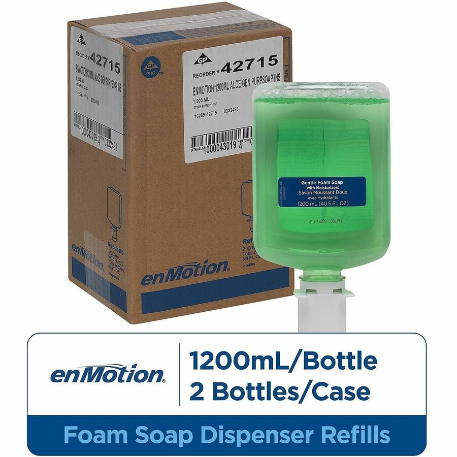enMotion Gen 2 Gentle Foam Soap with Moisturizers features a rich foaming lather and mild conditioning formula that leaves skin feeling fresh and is gentle enough for daily use. Closed hygienic refill bottles install with one hand and dispense at least 99-percent of foam product before replacement is needed. Use with compatible enMotion® Automated Touchless Soap Dispensers (52057, 52058 and 52060) (not included). |