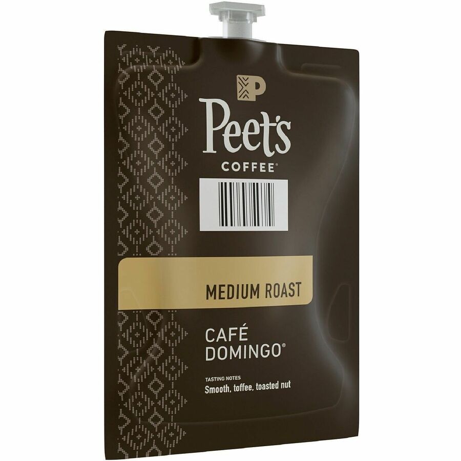 | Marketing Information | Peet's Cafe Domingo Coffee is a medium-roast blend crafted from three Latin American coffees for slow sipping and savoring. It offers a smooth, balanced taste with hints of toffee sweetness and a crisp, clean finish. Each Freshpack is created specifically for the workplace to ensure your employees enjoy them only at the office for greater control over your stock and expenses. Coffee is designed for use with Flavia single-serve brewers (not included). |
