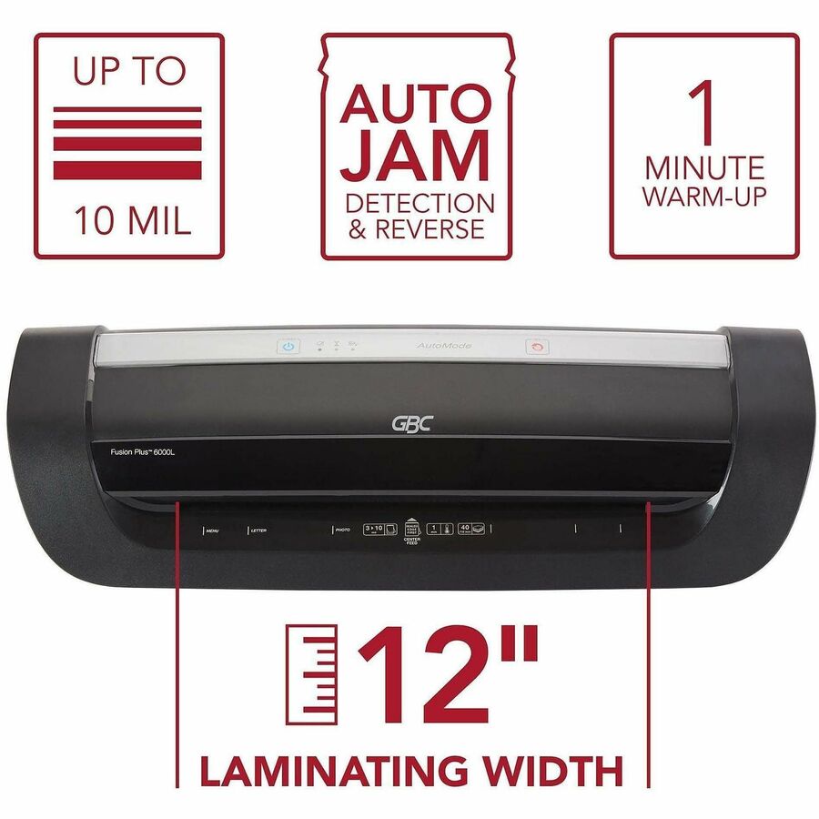 | Marketing Information | Thermal pouch laminator features highly accurate thickness sensors to let you quickly produce smooth, consistent laminations without having to select a thickness. Fast throughput and one-minute warm-up time provide maximum productivity for busy office environments. Built-in jam detection and auto reverse ensure frustration-free performance throughout large or small projects. Plus, its easy-to-use design with advanced features makes this the perfect unit for both novices and high-frequency users. Thermal laminator is designed for use with 3 mil to 10 mil thermal pouches. |