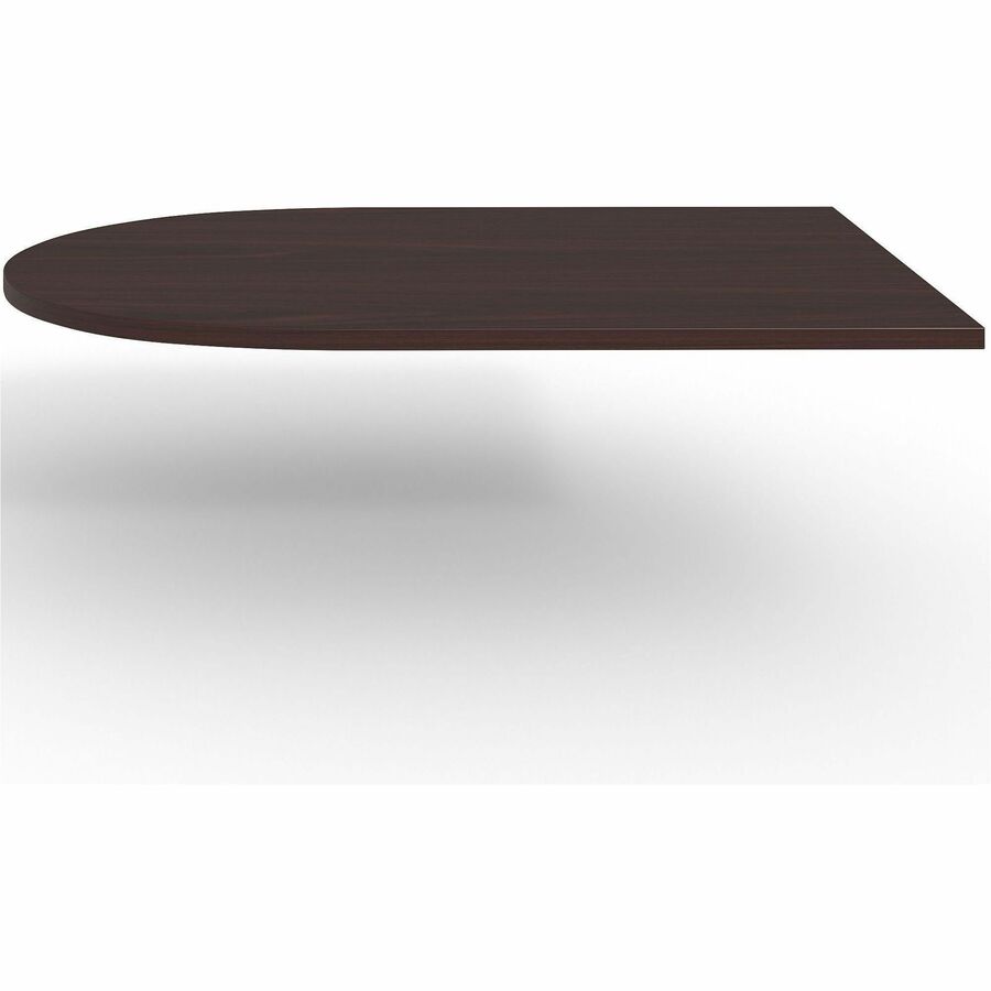 | Marketing Information | Half-Racetrack Conference Tabletop is part of the Lorell Prominence 2.0 Modular Conference Tables that offer an elegant design perfect for your executive office suites. The modular architecture allows multiple configurations as you match this tabletop with the Lorell Prominence 2.0 Slim Laminate Base or Laminate Base with a wire-management door (both sold separately). Combine this tabletop with another half-racetrack tabletop for a complete conference table. It cannot be used alone. Durable, Mahogany laminate surface is mar-resistant, burn-resistant and impact-resistant to withstand hectic, daily work life. Sturdy, 1-1/2" thick top features matching 3mm edgebanding and a convenient grommet hole for cord management. Tabletop is made with 45 lb. density particleboard. Tops and bases are sold separately. Put together with metal-on-metal assembly. |