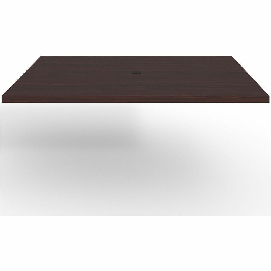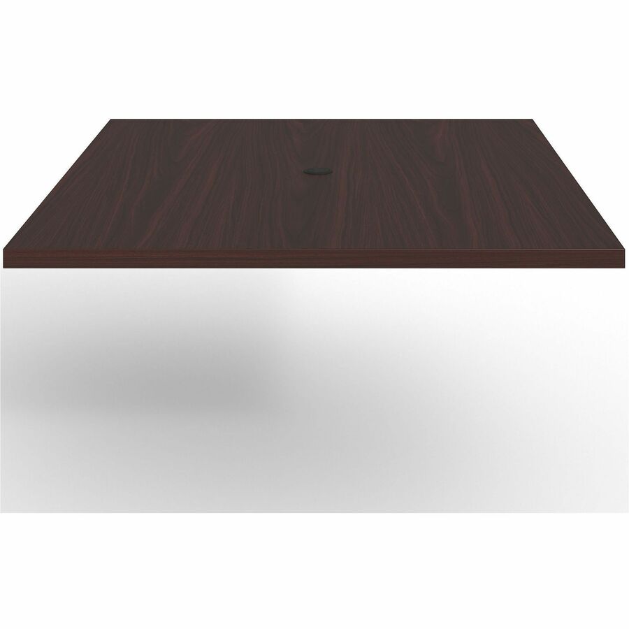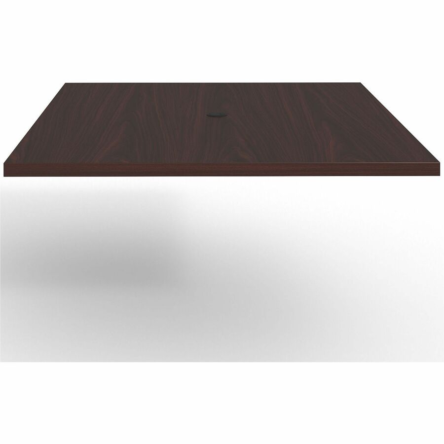 | Marketing Information | Rectangular Conference Tabletop is part of the Lorell Prominence 2.0 Modular Conference Tables that offer an elegant design perfect for your executive office suites. The modular architecture allows multiple configurations as you match this tabletop with the Lorell Prominence 2.0 Slim Laminate Base or Laminate Base with a wire-management door (both sold separately). You can also combine this 60" wide tabletop with other rectangular tabletops. Durable, Mahogany laminate surface is mar-resistant, burn-resistant and impact-resistant to withstand hectic, daily work life. Sturdy, 1-1/2" thick top features matching 3mm edgebanding and a convenient grommet hole for cord management. Tabletop is made with 45 lb. density particleboard. Tops and bases are sold separately. Put together with metal-on-metal assembly. |