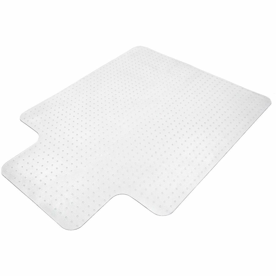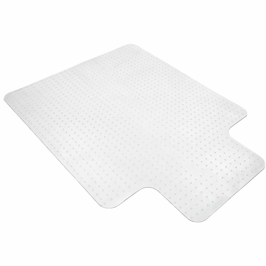 | Marketing Information | Clear rectangular chairmat will extend the life of your carpet by spreading out the pressure from your chair casters. Will also reduce fatigue by allowing easier rolling across your work space with less back and leg strain. Designed for use on medium plush 3/4" thick or less carpets including padding. Provides a studded back designed to achieve a strong grip without piercing or damaging your carpet backing, smooth edge for smoother rolling on and off your mat, and a 19" wide x 10" deep lip to cover the carpet under your desk when your chair is pushed all the way in. Crystal-clear chairmat lets the beauty of your carpeting show through and is made of heavy-duty material to stand up to years of daily wear and tear. |