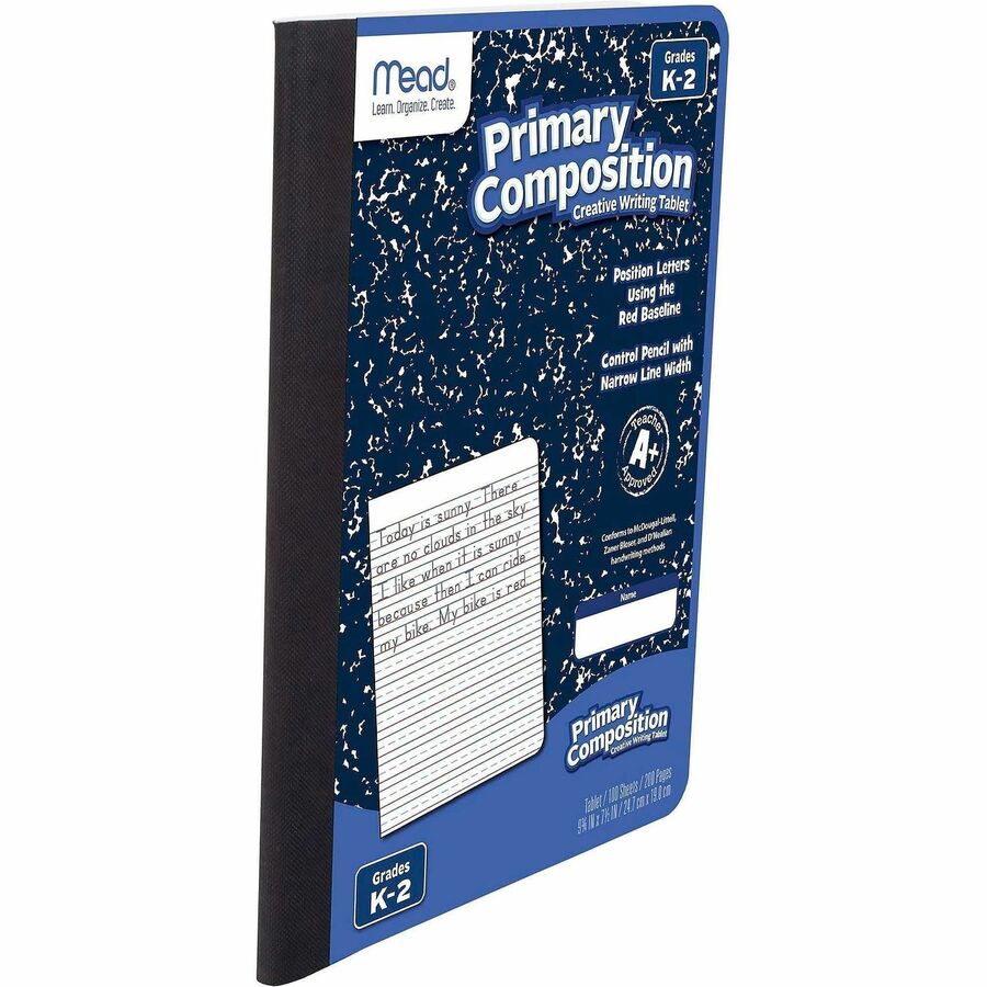 | Marketing Information | Primary Composition Book for beginning students features primary ruled lines. It is ideal for helping students in kindergarten to second-grade practice letters and improve their writing. Students can position the letter using the red baseline. Then, they can control the pencil with the narrow-line width. Journal conforms to Zaner-Bloser, McDoughal Littell and D'Nealian handwriting methods. The inside front cover includes a manuscript and cursive alphabet. Durable cover is bookbound to match stand composition books. |