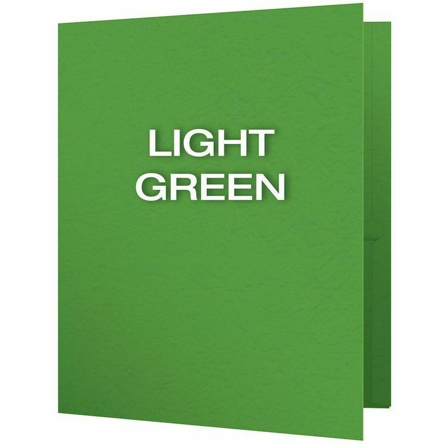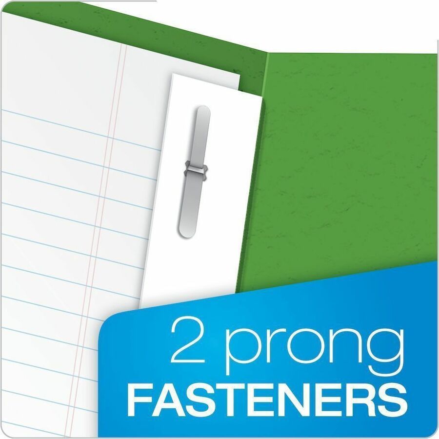 Oxford® Twin Pocket Folders store up to 135 sheets of letter-sized paper. The built-in, 2-prong metal fasteners prevent important papers from falling out. Textured light green covers. Die-cut business card holder on inside pocket. Paper made from 10% recycled fiber with 10% post consumer fiber. Letter size. 25 Per box. |