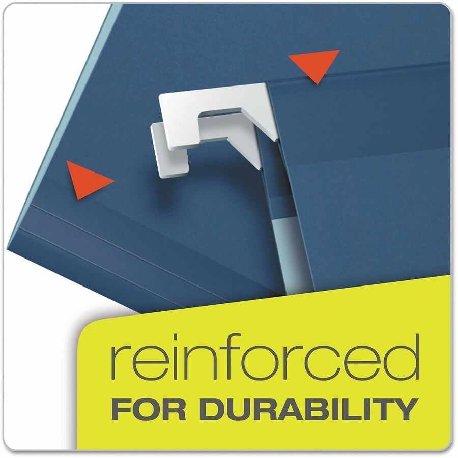 Reinforced Hanging File Folders include letter-size, printer-ready insert sheets for use with clear tabs and a dispensing box with perforated section for easy, one-at-a-time access. Reinforced with patented polylaminate at all critical wear points. Lighter interior helps prevent misfiles. |
