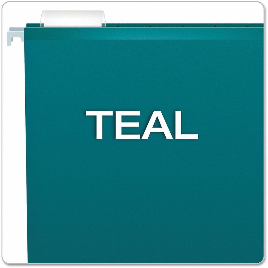 Reinforced Hanging File Folders include letter-size, printer-ready insert sheets for use with clear tabs and a dispensing box with perforated section for easy, one-at-a-time access. Reinforced with patented polylaminate at all critical wear points. Lighter interior helps prevent misfiles. |