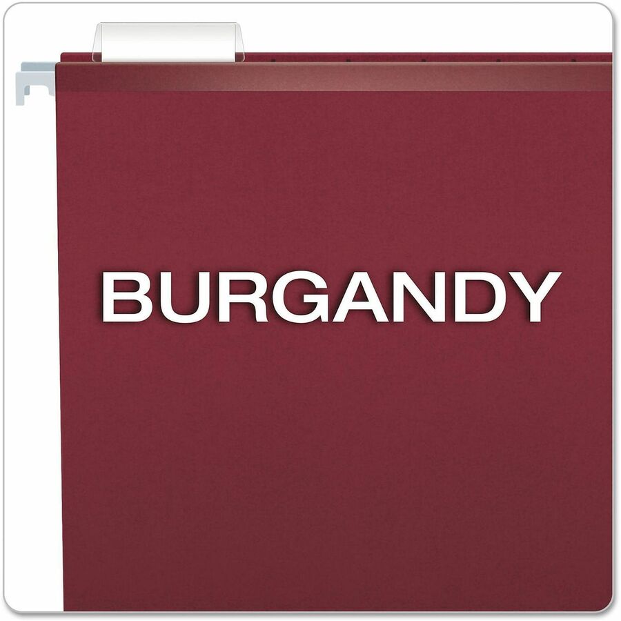 Reinforced Hanging File Folders include letter-size, printer-ready insert sheets for use with clear tabs and a dispensing box with perforated section for easy, one-at-a-time access. Reinforced with patented polylaminate at all critical wear points. Lighter interior helps prevent misfiles. |