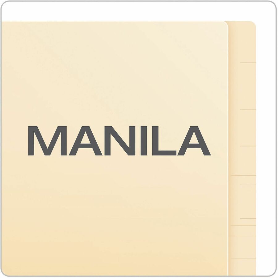 Laminated file folders offer patented polylaminate reinforcement on the bottom score and embossed score marks for easy label placement. Reinforcement on bottom score strengthens the folder at the wear point. Double-ply tab provides maximum durability. Extra heavyweight, 14 point file folder holds letter-size documents. |