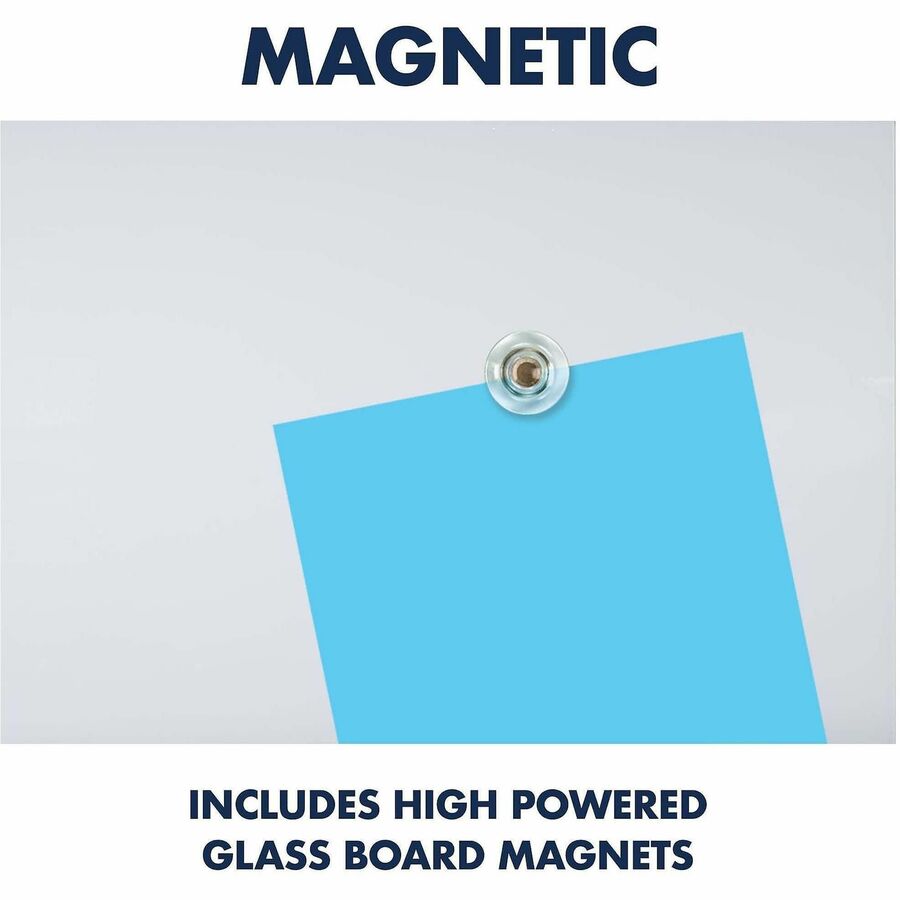 | Marketing Information | Magnetic dry-erase board offers all of the benefits of a traditional board with an upscale, modern aesthetic appeal. Extremely durable, tempered glass provides a smooth writing platform to let dry-erase markers glide evenly over the board for smooth, clear communication. Frameless design offers pleasing aesthetics in every space from a home office to a corporate boardroom. InvisaMount with hidden hardware maximizes your usable board space and gives the whiteboard a floating appearance on the wall. Dry-erase board with a detachable marker tray is perfect for daily meetings, brainstorming sessions, customer messaging and more. Due to the thickness of the glass, this board is compatible with only high-powered, glass-board magnets (not included). |