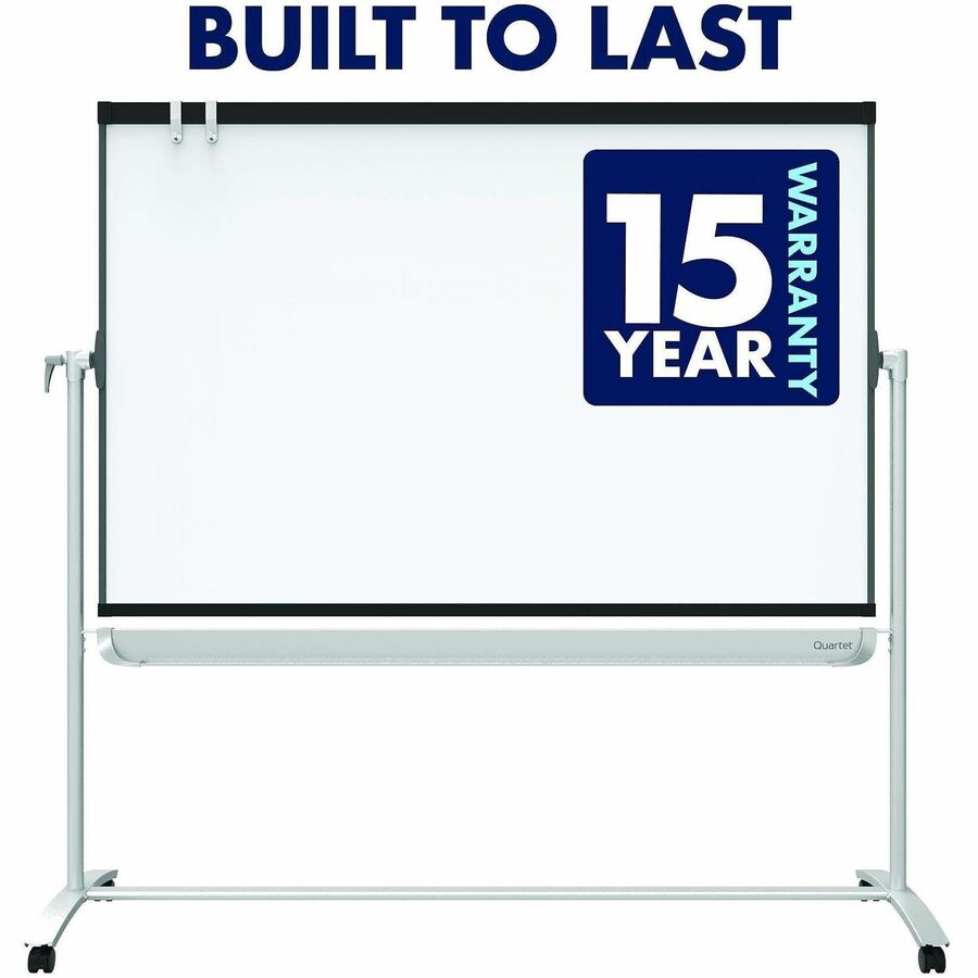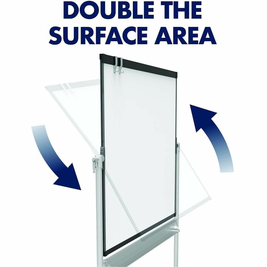 | Marketing Information | This magnetic, mobile presentation easel is built for ease of use to meet all of your communication and collaboration needs. Total Erase surface offers a high level of durability that resists ghosting and staining through moderate use to ensure the surface stays bright and clean. Steel-backing allows the whiteboard to double as a magnetic bulletin board for versatile display options. Included flip-chart holders support any standard-size flip chart (sold separately). Reversible design provides twice the amount of work space to keep more of your work available. Smooth-rolling, four-caster wheels allow quick, easy transportation from room to room. |