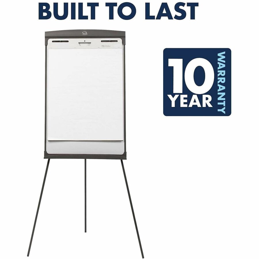 | Marketing Information | Sturdy tripod easel features a 27" x 35" magnetic marker board and flip chart pad retainer that holds any standard-size flip chart pad. Easel includes a full-length accessory tray and nonskid plastic feet that won't mar floors. Legs lock into place and fold for storage and easy transport. Tripod easel adjusts from 42" to 72" high for tabletop or floor use. |