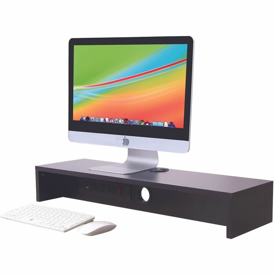 4.70" Height x 30" Width x 9" Depth - Desk - Black - For Monitor - Electrical Outlet, USB Charging Port, Cable Management