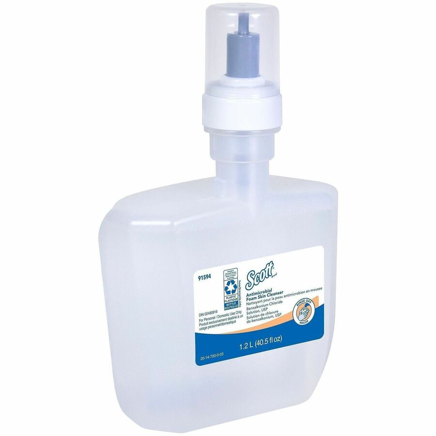 | Marketing Information | Scott provides enhanced hygiene solutions for critical environments. When staying clean and hygienic are top priorities, use this Antimicrobial Foam Skin Cleanser that contains 0.1 percent benzalkonium chloride. Simple-to-load, electronic cassette is designed to fit with Scott Professional Cassette Electronic Skin Care Dispensers and Kimberly-Clark Professional ICON Electronic Skin Care Dispensers (none included) so employees and guests can dispense easily. When you're looking for an efficient, thorough foam cleansing solution, trust this Scott Antimicrobial Foam Skin Cleanser. It's mild and gentle enough for everyday use. |