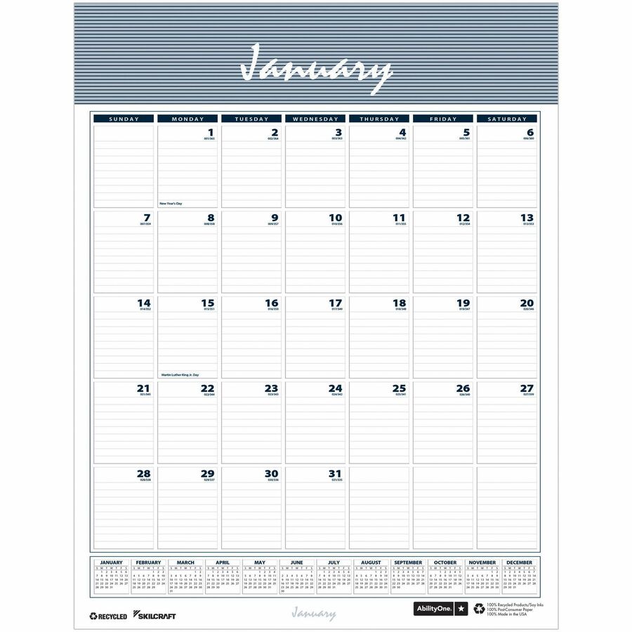 SKILCRAFT® Monthly Wall Calendar 12-Month Vertical