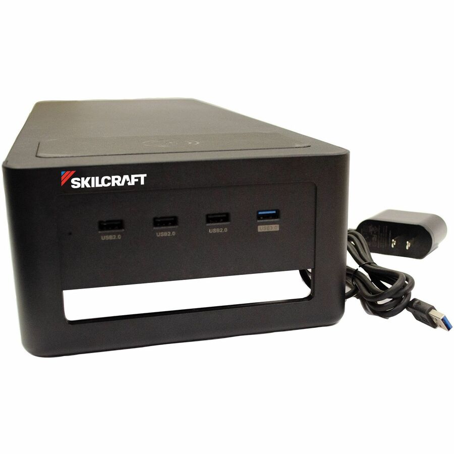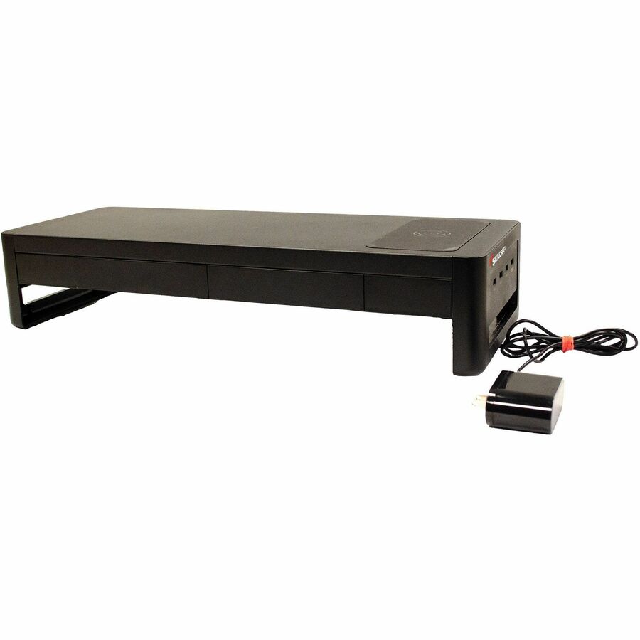 Monitor stand elevates your monitor for ergonomic screen positioning and comfortable viewing to reduce neck pain and eyestrain. Built-in wireless and USB charging keep all your devices charged and ready-to-use. Storage drawer lets you organize your supplies and keep them within reach. Wireless Charging Monitor Stand adds a contemporary feel to any work space. It features a wireless charging pad, four USB-A ports, tablet slot and two storage drawers. Stand is made of aluminum and plastic. |