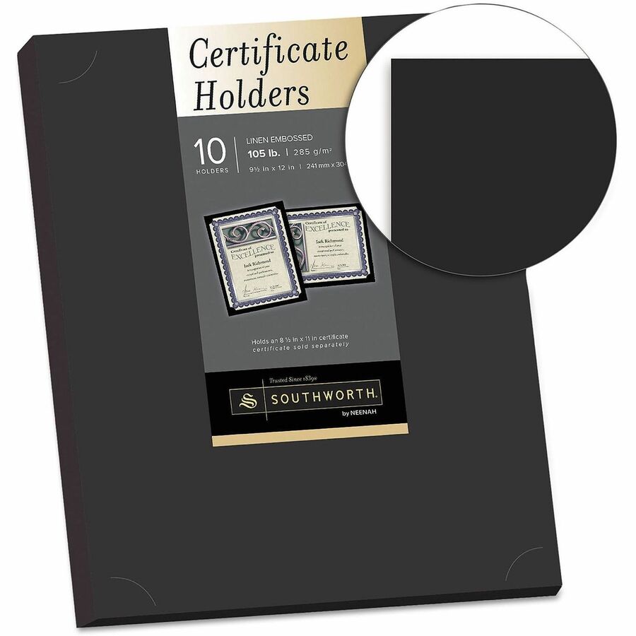 - Design features four curved, die-cut slits to secure certificate and linen-finish cardstock