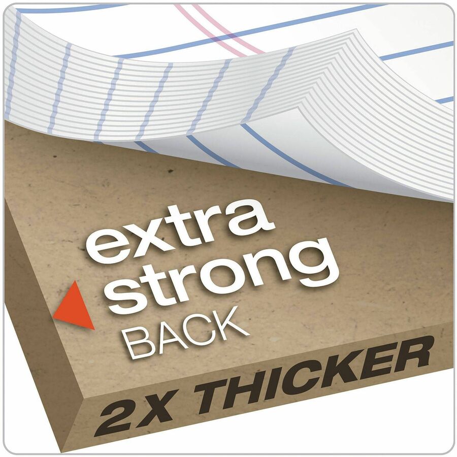 | Marketing Information | Double Docket Legal Pad offers twice the sheets of standard writing pads. Letr-Trim perforation at the top delivers a clean tear-out every time. Binding at the top is double-stitched for added strength. Sturdy, 60 point chipboard backer provides writing support when away from a desk. Each letter-size pad contains 100 sheets of heavyweight, 16 lb. paper that resists bleed-through. Each sheet is narrow-ruled with 1/4" line spacings and a 1-1/4" left margin. |