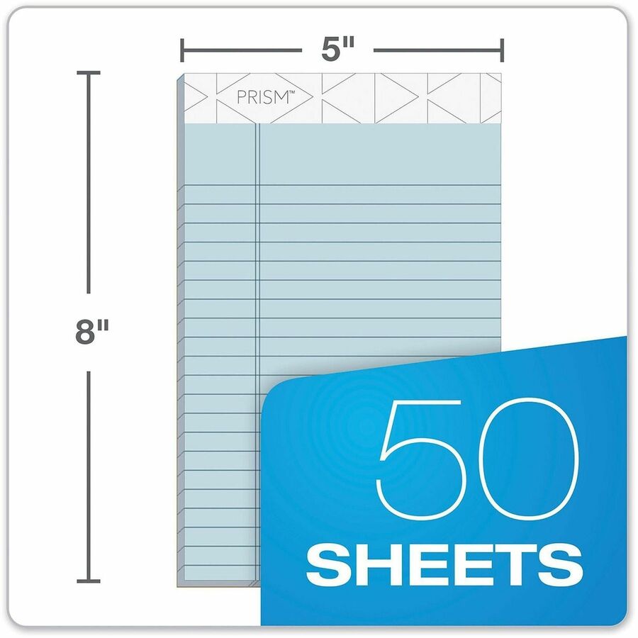 Prism Plus Pads offer soft-colored paper and matching binding. Rigid, 60 point, chipboard back acts like a clipboard, providing excellent writing stability. Easy-tear, Letr-Trim perforations allow sheets to be removed easily. Each pad contains 50 ruled sheets of 16 lb. paper. Each junior legal-ruled sheet has 9/32" line spacings and a 1" left margin. |