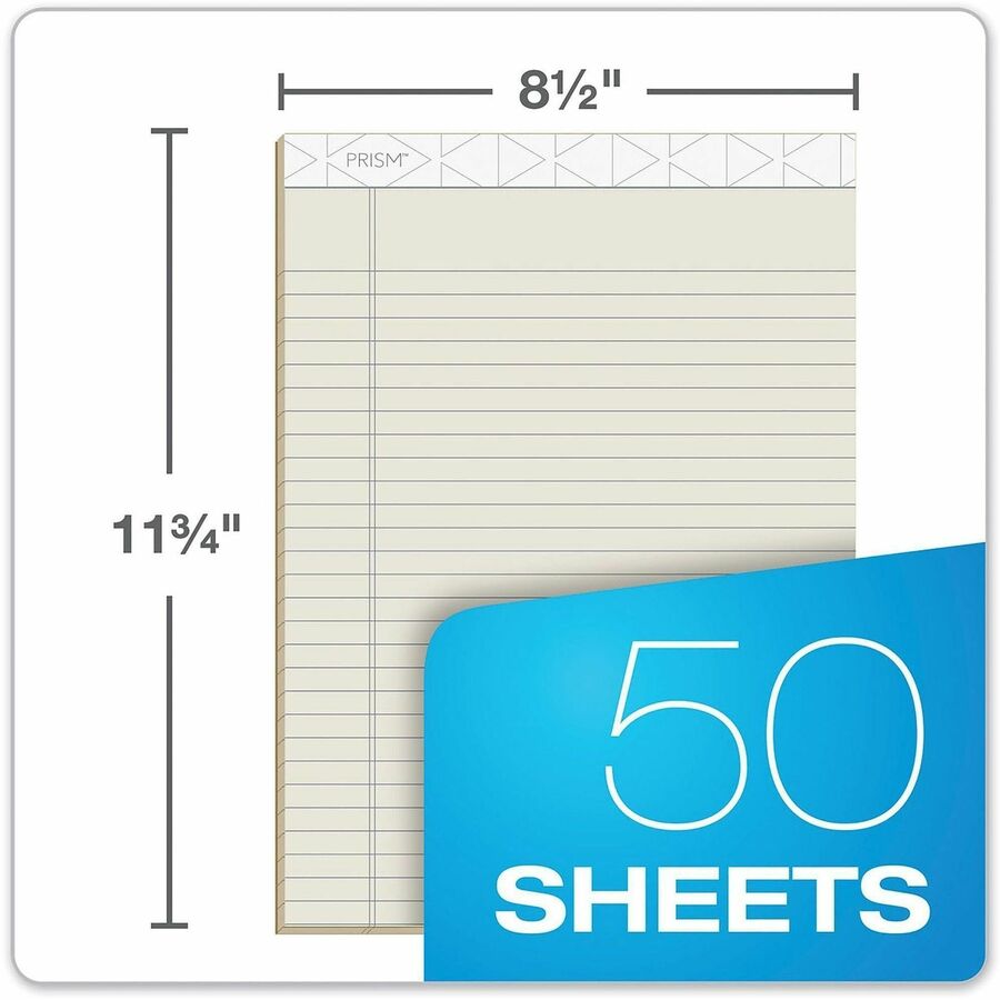 Brighten the office with soft colored papers and bindings to match. Colors are easy on the eyes and help organize projects. Prism Plus Pads also offer a rigid, 56 point chipboard backer that acts like a clipboard, providing excellent writing stability. Easy-tear, Letr-Trim perforations allow sheets to be removed easily. Each pad contains 50 ruled sheets of 16 lb. paper. Each legal/wide-ruled sheet has 11/32" line spacings and a 1-1/4" left margin. |