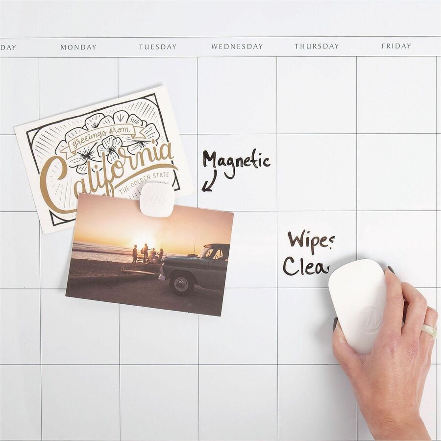 - Painted steel magnetic dry erase calendar surface is highly durable, erases easily, resists staining and ghosting