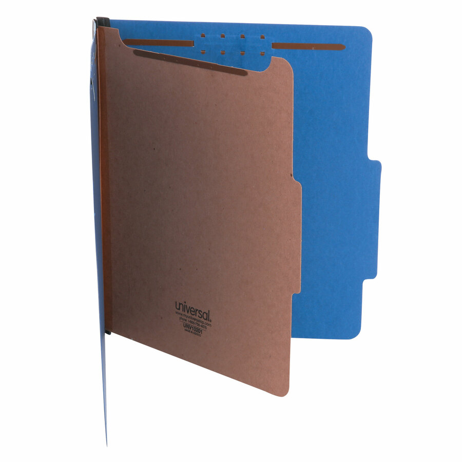 Color-code your filing with heavy-duty covers in vivid colors. Organize and subdivide materials with 2" capacity prong fasteners inside front and back 25 pt. pressboard covers. 1" capacity metal fastener on each side of 20 pt. Kraft dividers. Tear resistant reinforced gusset for added durability during expansion. |