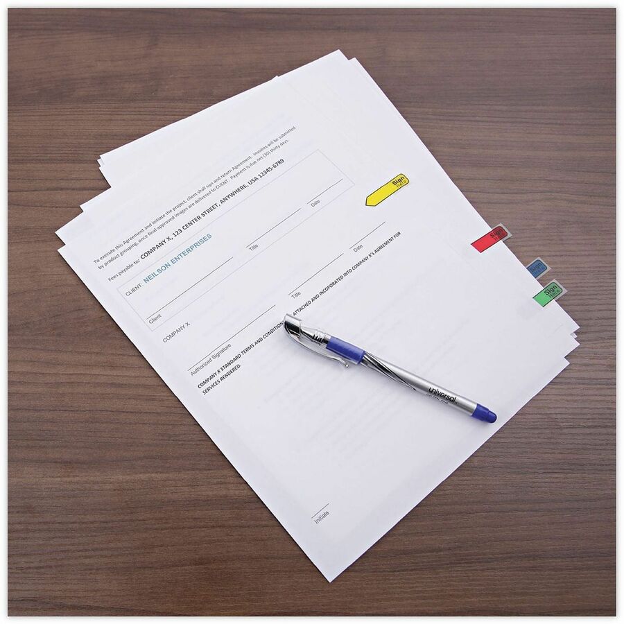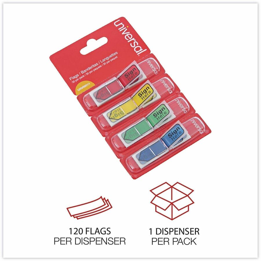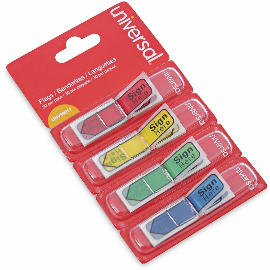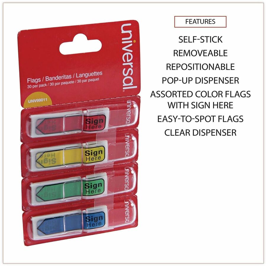 100 - 1/2" Flag/Note Width x 1 3/4" Flag/Note Length - Rectangle - SIGN HERE - Blue, Green, Red, Yellow - Pop-up, Repositionable, Reusable - Dispenser Included - 120 / Pack