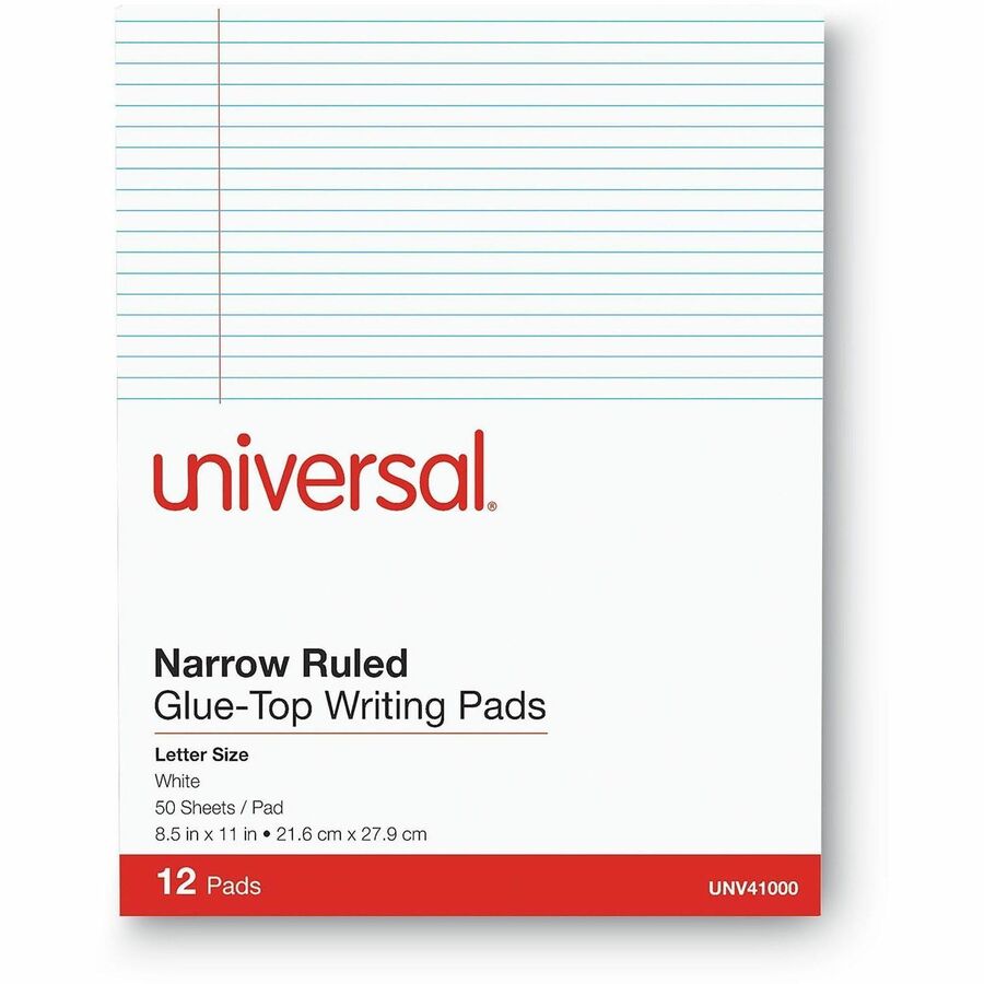 Universal Glue Top Pads, Narrow Rule, 50 White 8.5 x 11 Sheets, Dozen