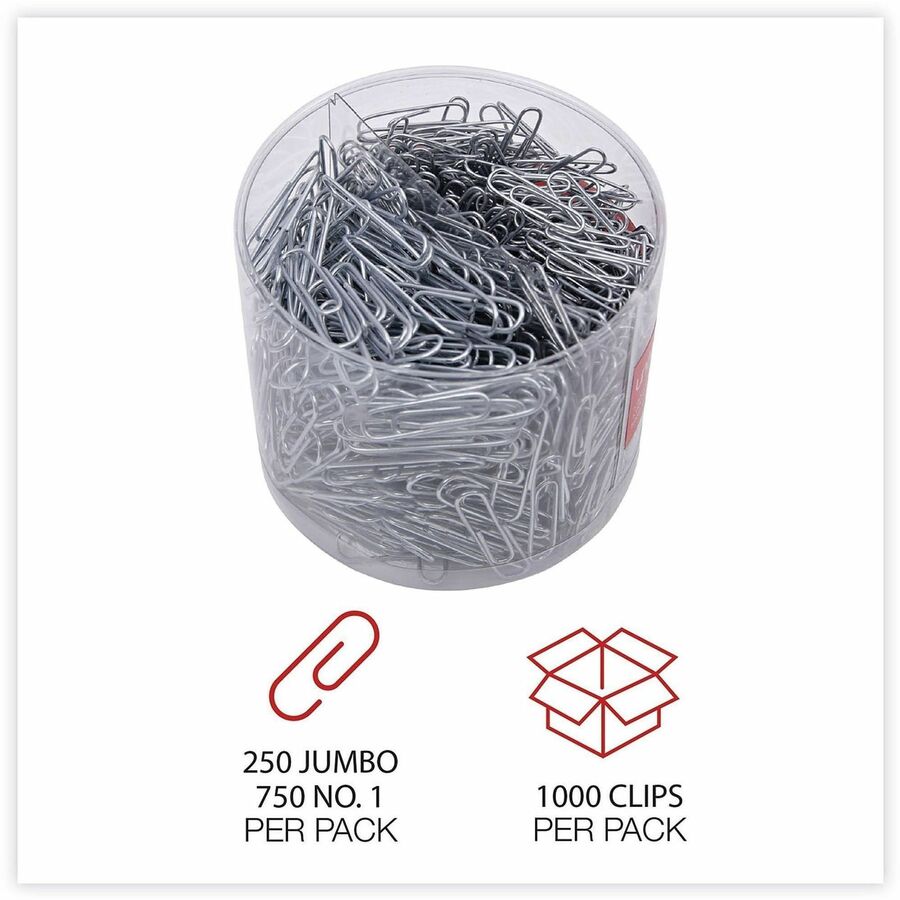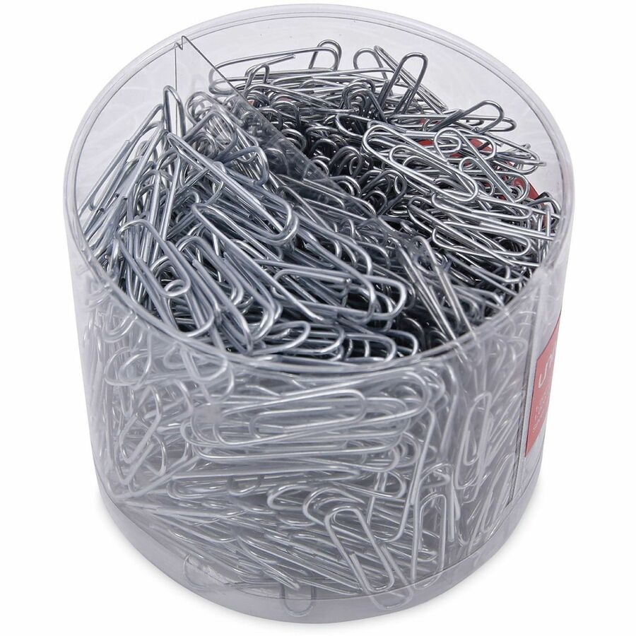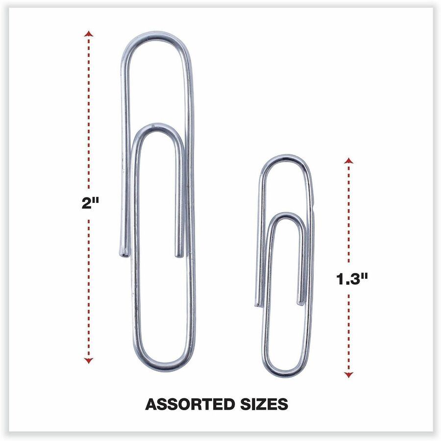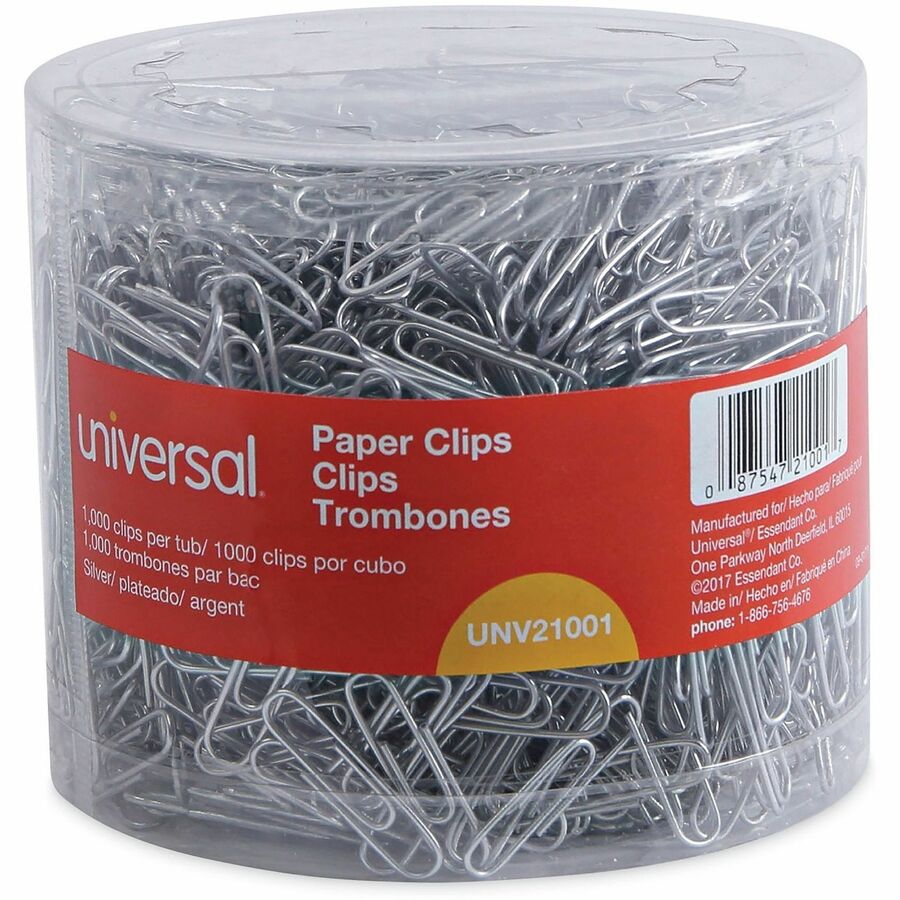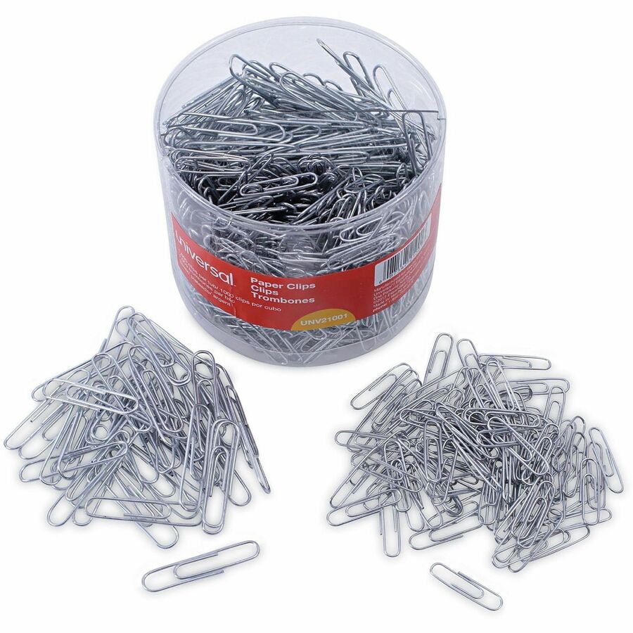 | Marketing Information | Taking the classic Universal® Paper Clips to a new level, these enhanced yet still economical, high-quality paper clips feature a smooth plastic coating to provide an additional level of protection to your documents. The otherwise traditional design delivers the same tight-fastening performance, just with an added level of protection against creasing, crumpling, tearing or otherwise marring the individual sheets. Durable steel wire is fully covered in a thin layer of plastic, but it flexes exactly as it should without becoming easily bent out of shape. |
