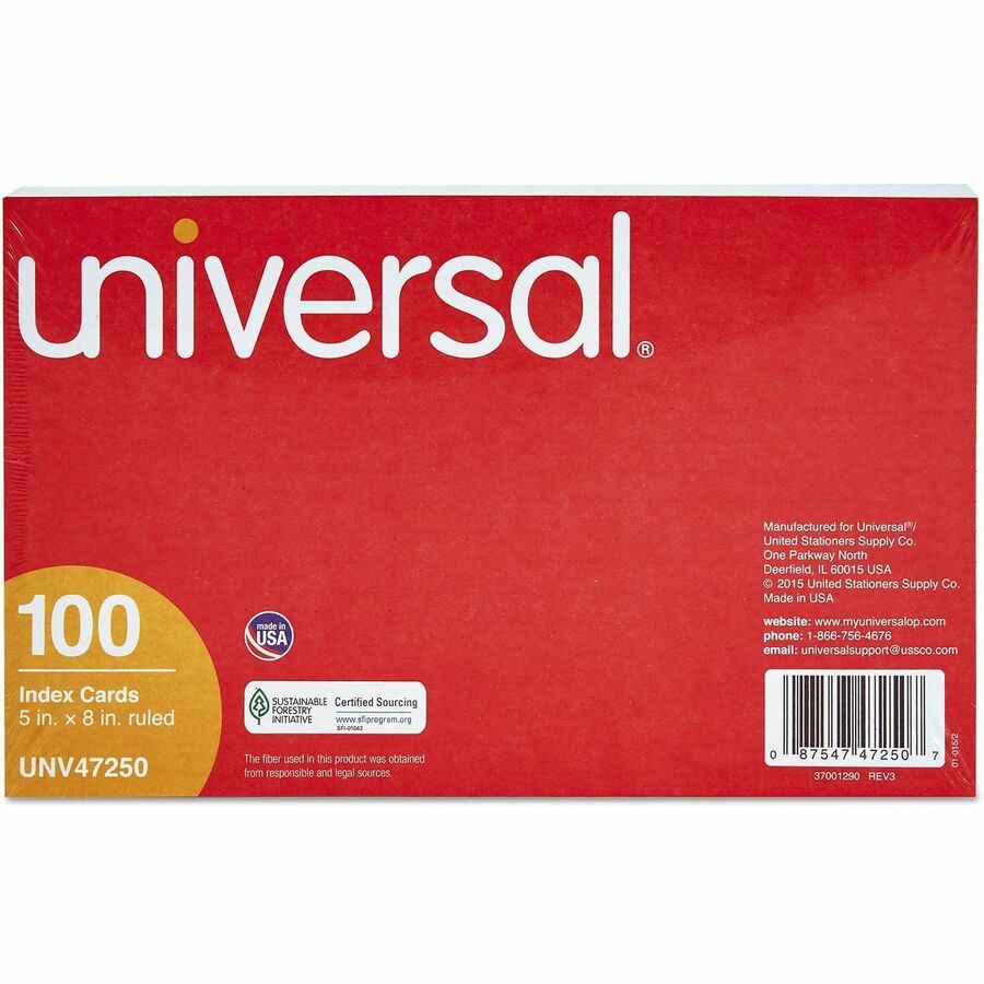 Universal Ruled Index Cards, 5 x 8, White, 100/Pack
