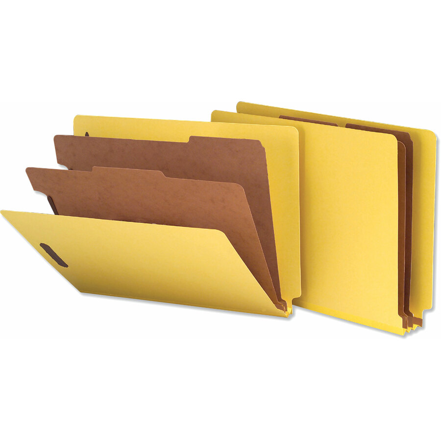 8 1/2" x 11" - 2" Expansion - 6 Fastener(s) - 2" Fastener Capacity - End Tab Location - 2 Divider(s) - Yellow - 10 Box